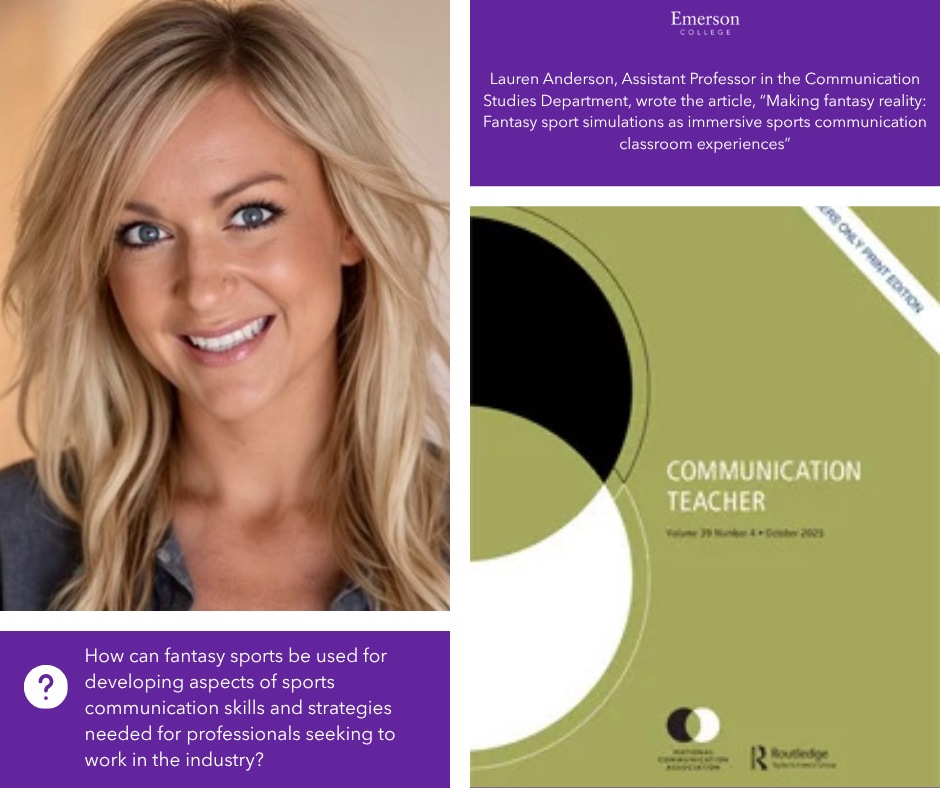 Lauren Anderson’s article “Making fantasy reality: Fantasy sport simulations as immersive sports communication classroom experiences” appeared in the July 2025 issue of Communication Teacher, a peer-reviewed journal published online by Taylor & Francis. Her work explores how fantasy sports can be used as a tool for developing aspects of communication skills and strategies needed for professionals seeking to work in the sports communications industry.
