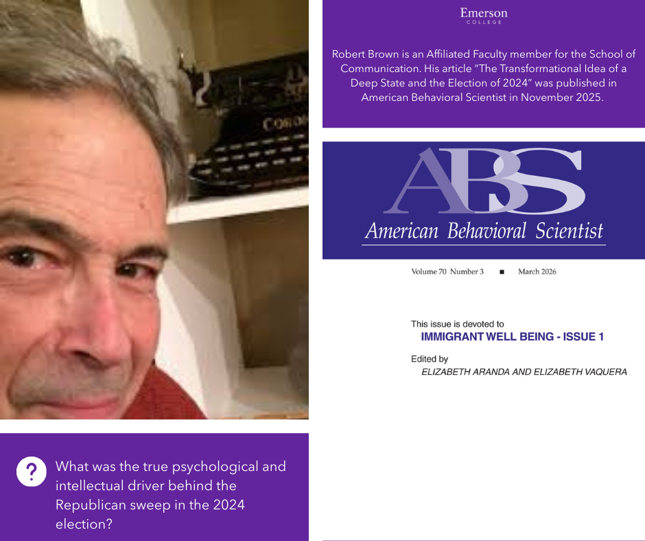 Robert Brown is an Affiliated Faculty member for the School of Communication. His article “The Transformational Idea of a Deep State and the Election of 2024” was published in American Behavioral Scientist in November 2025. In this article, Brown examines how the belief of a metaphysical force influenced the Presidential election in 2024.