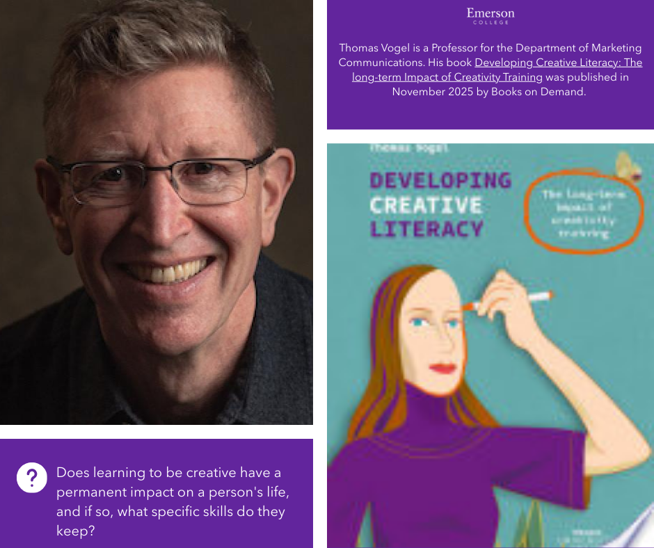 Thomas Vogel is a Professor for the Department of Marketing Communications. His book Developing Creative Literacy: The long-term Impact of Creativity Training was published in November 2025 by Books on Demand. Vogel’s work expands upon the idea that creative teaching is not reserved to short-term learning, rather is a long-term method that could be applied to other teaching models.