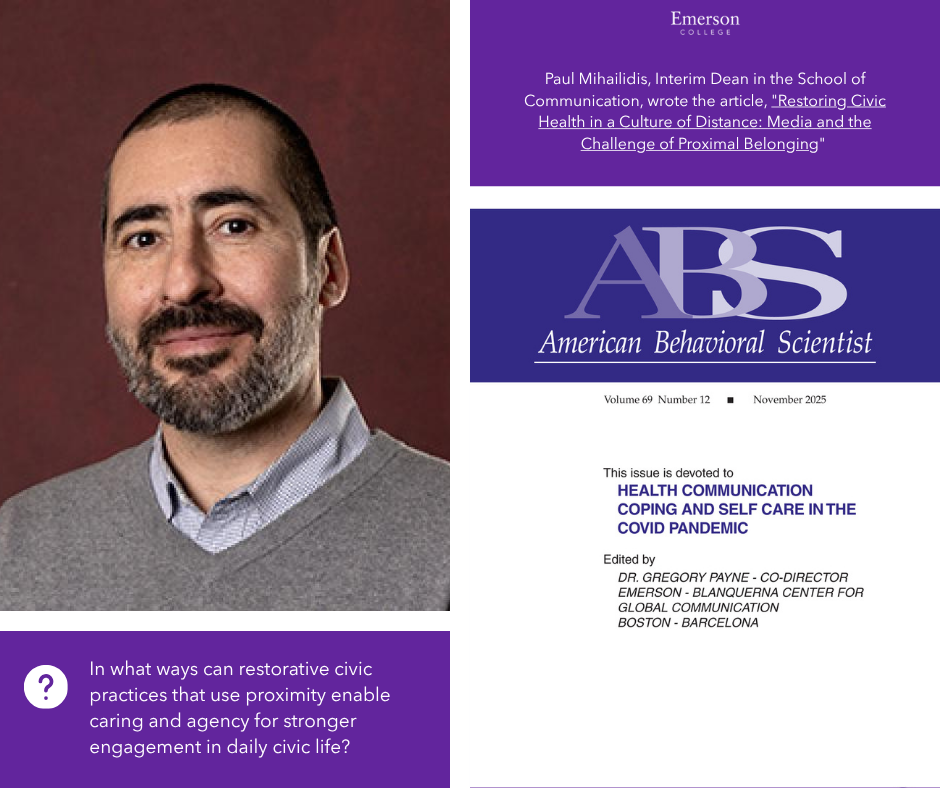 Paul Mihailidis, Interim Dean in the School of Communication, wrote the article, “Restoring Civic Health in a Culture of Distance: Media and the Challenge of Proximal Belonging” that appeared in the August 2025 issue of American Behavioral Scientist, a peer‑reviewed journal published by SAGE. His research highlights the need for a clear understanding of the relationship between our digital technologies and our lived environments.